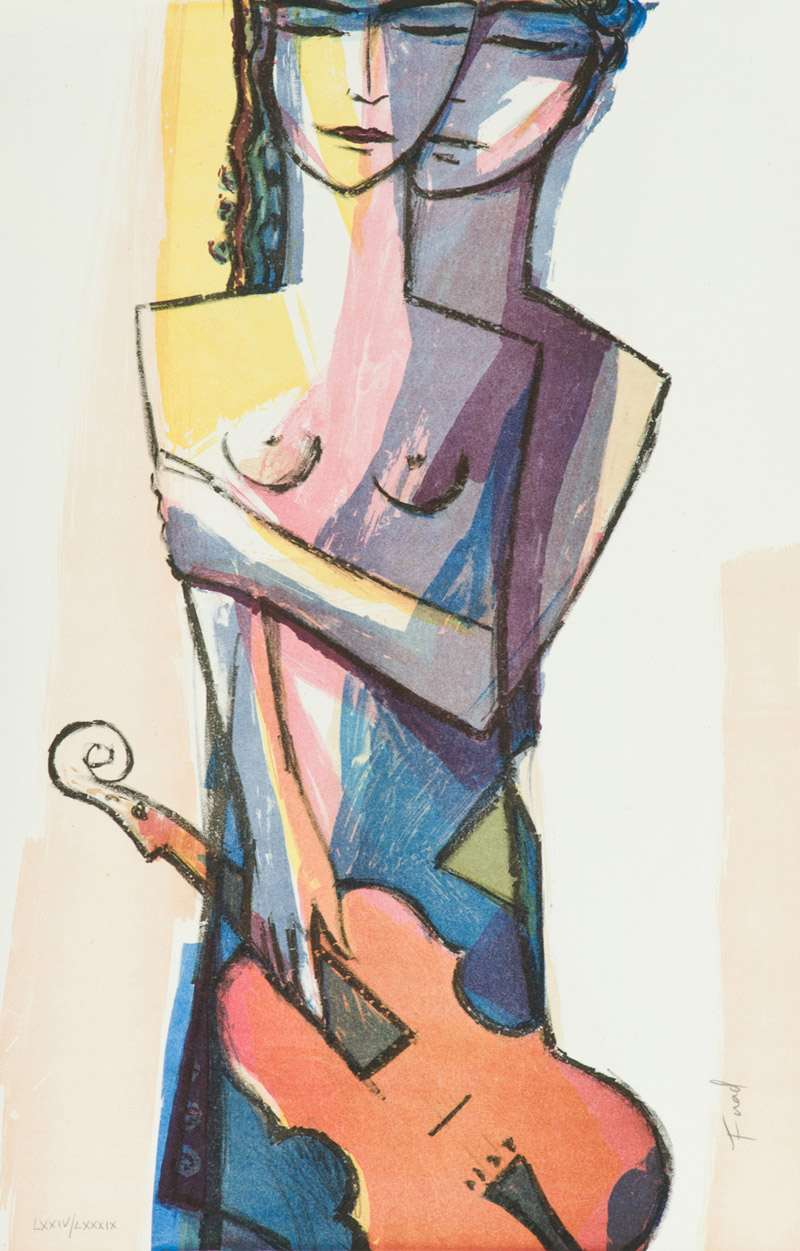 Aziz Fuad La coppia Litografia su carta, cm. 60x40, es. LXXIV/LXXXIX Firma in basso a destra, tiratura in basso a sinistra. Certificato di Garanzia "Edi - Grafica", Firenze.