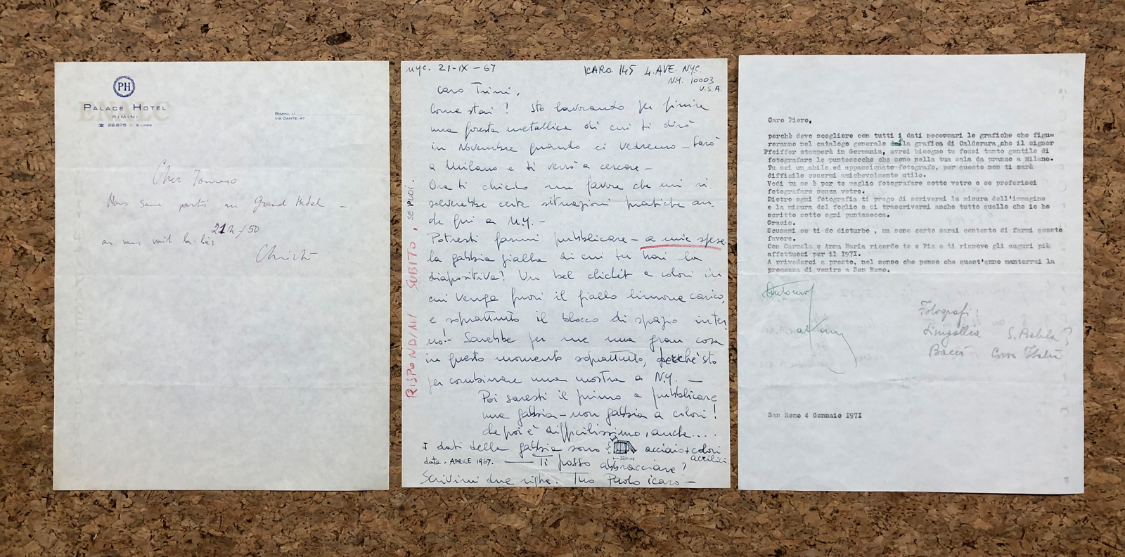 - Christo, lettera autografa su carta intestata del Palace Hotel di Rimini
