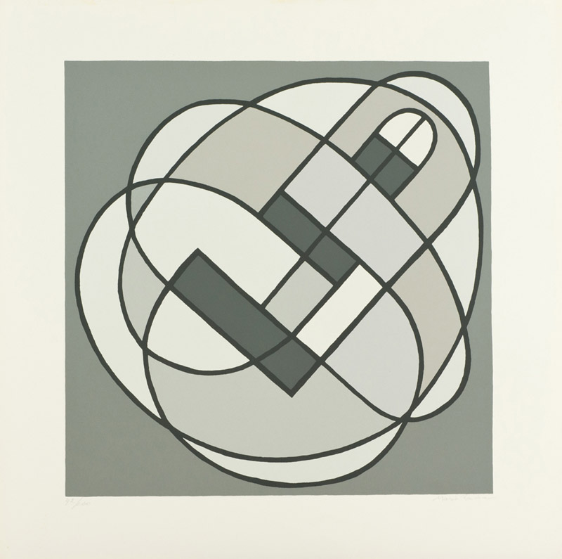 Mario Radice Senza titolo Serigrafia su carta, cm. 69x69, es. 72/100 La carta presenta lievi ingiallimenti ai bordi. Firma in basso a destra, tiratura in basso a sinistra.