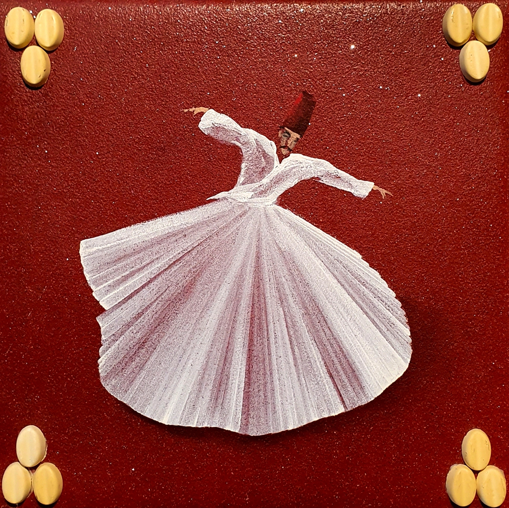 Olio e cioccolatini su linoleum 40x40 cm. Firma al retro. Archivio Aldo Mondino n.20091026165539 con documentazione allegata.