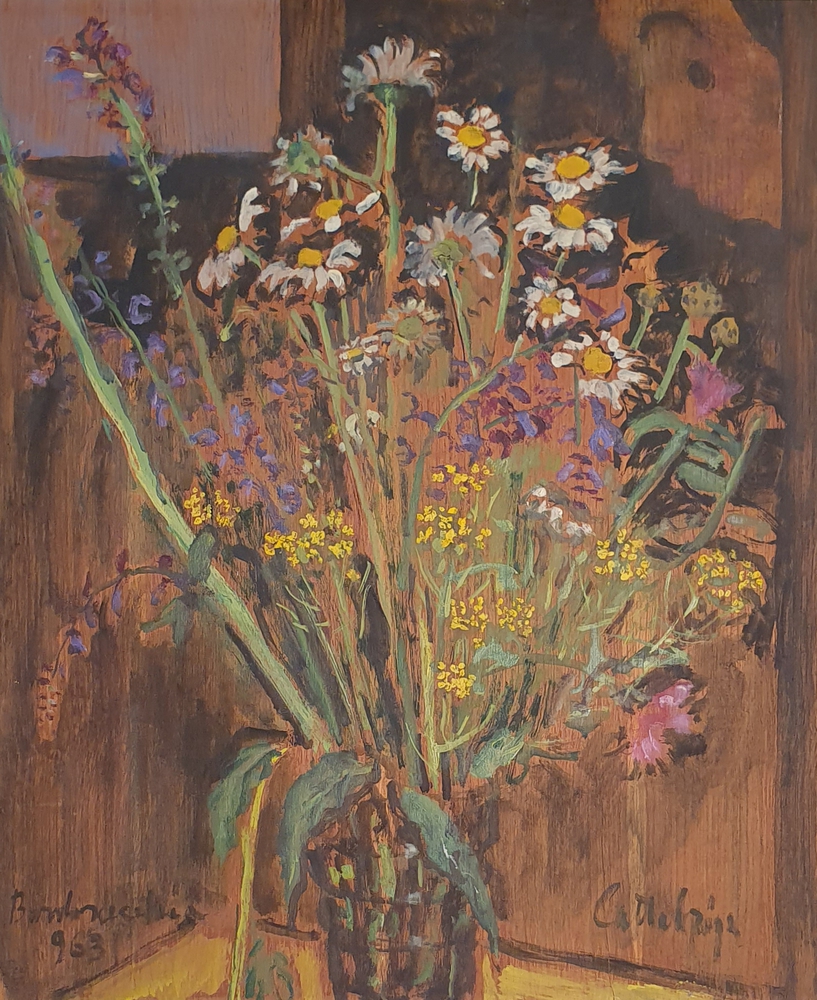 Olio su tavola 50x60 cm. Firma in basso a destra di ogni lato dipinto. Note: trattasi di n. 2 dipinti, dipinti su due lati della stessa tavola. Provenienza: Collezione degli eredi Cattabriga (Bondeno-Ferrara).