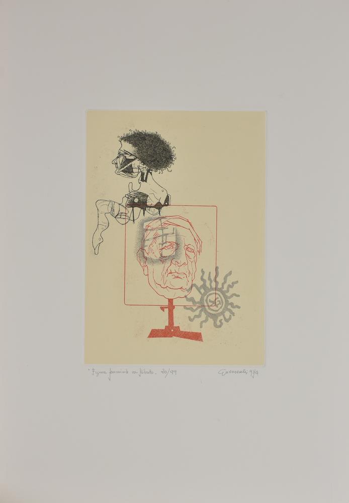 Giuseppe Guerreschi FIGURA FEMMINILE CON RITRATTO incisione su carta, foglio...