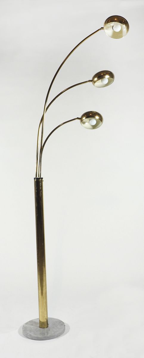 Lampada da terra in ottone a 3 braccia. Anni '70.