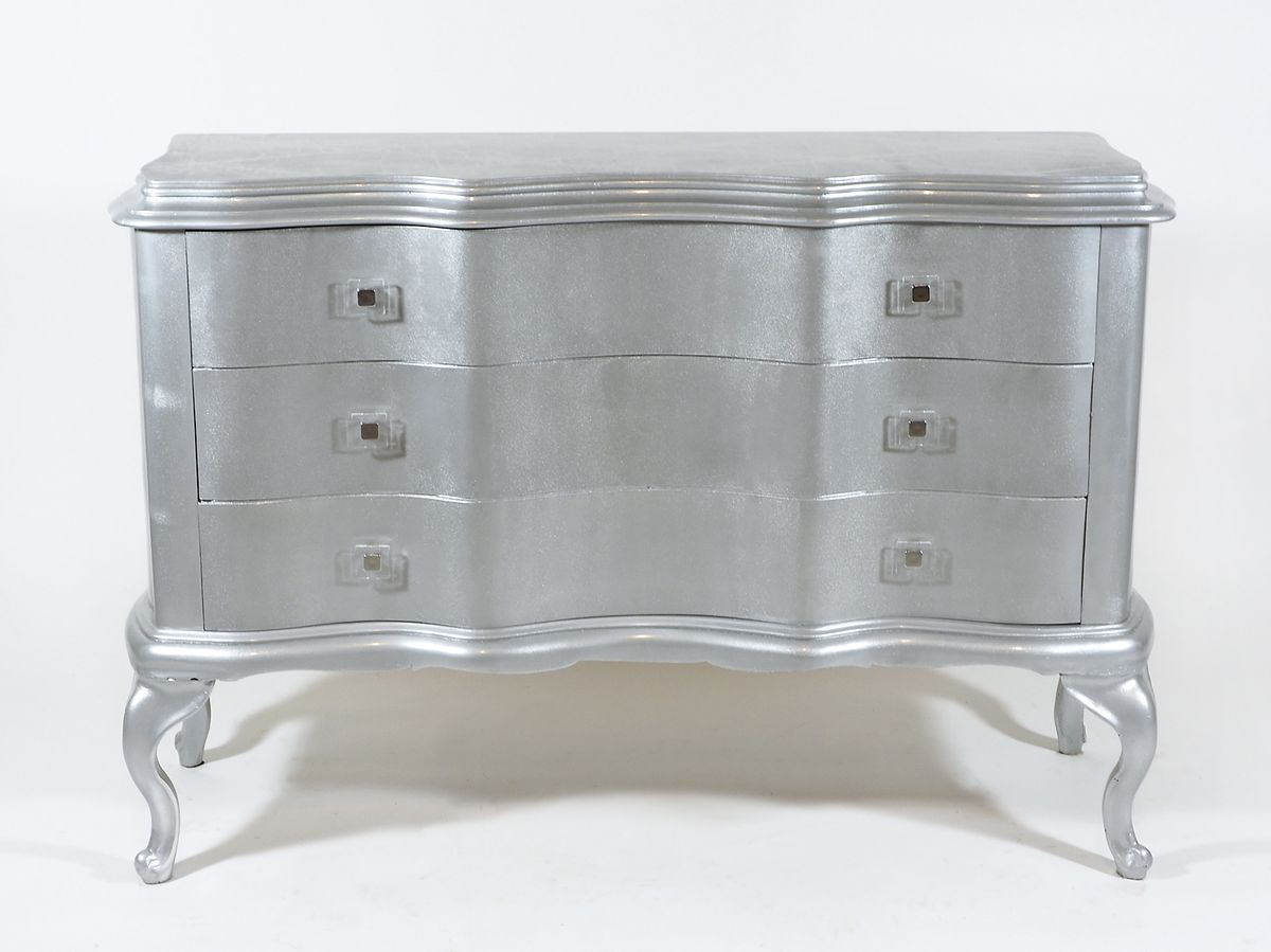 Lot 144 | Cassettone in legno a 3 cassetti dipinto argento. cm. 85x125x40.
