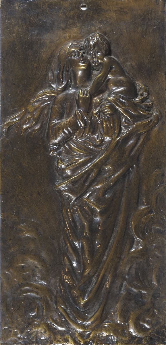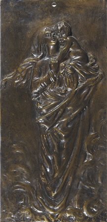Bassorilievo in bronzo raffigurante Madonan con bambino. cm. 43x20.