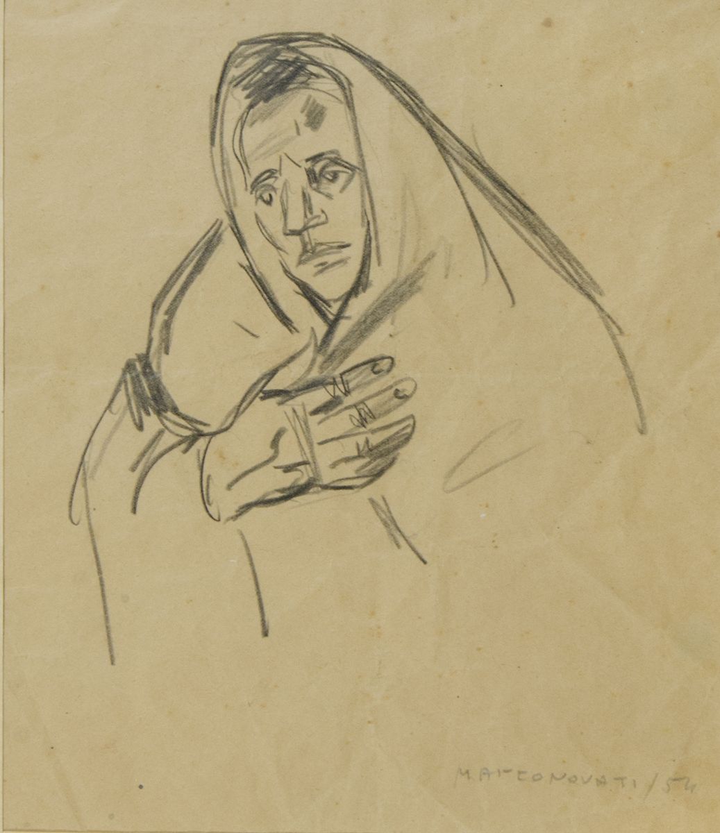 Marco Novati 1895-1975 "Figura" cm. 22x19 - disegno a matita Firmato b. a d....