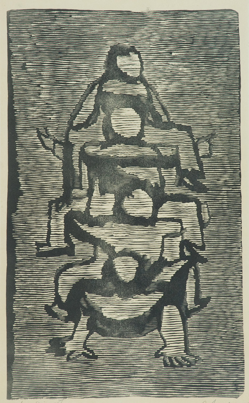 Mino Maccari Figure, 1954 Linoleografia di cm. 40x24, su carta di cm. 44x28, es. P.A. Firmato in basso a destra.