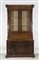 Trumeau in legno a doppio corpo con parte inferiore a 3 cassetti e calatoia, parte superiore a 2 ante a vetro. cm. 245x135x57.