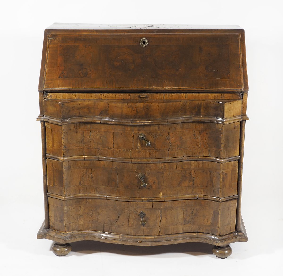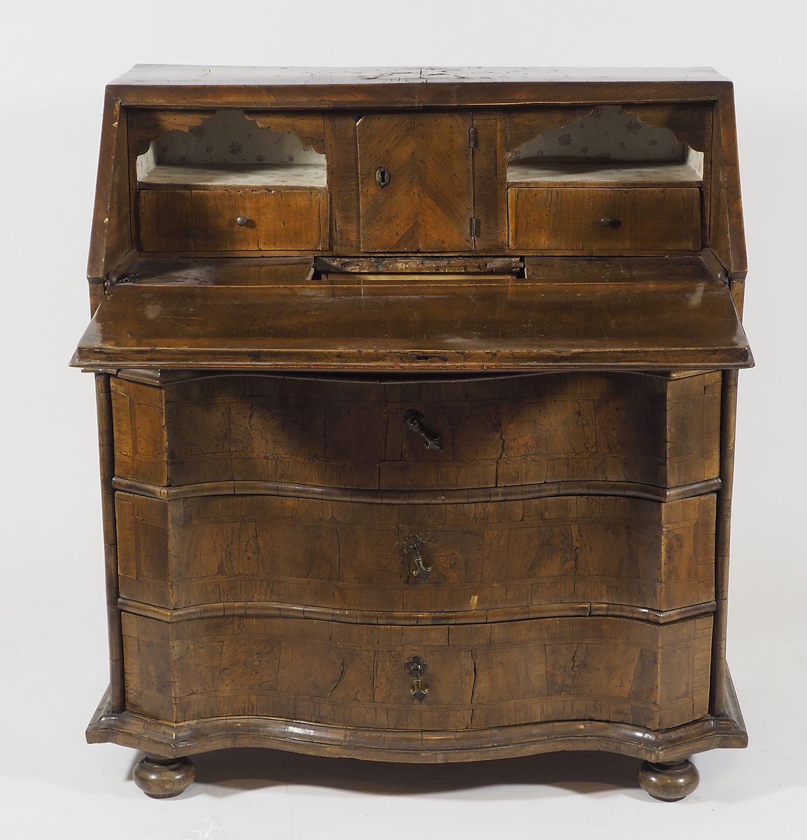Cassettone in legno a 3 cassetti e ribalta, all'interno piccoli cassetti. XVIII secolo. cm. 101x90x52