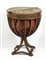 Tavolo da centro in legno a forma di globo, con sacca in tela. (difetti).