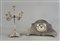Lotto in argento composto da orologio da tavolo e candeliere a 5 luci.