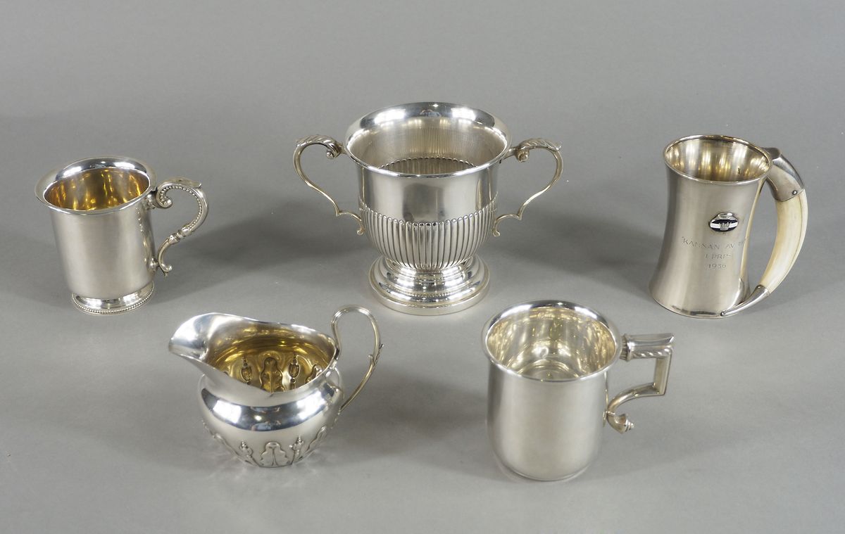 Lotto in argento composto da vari contenitori inglesi. Inizio XX secolo. gr....