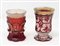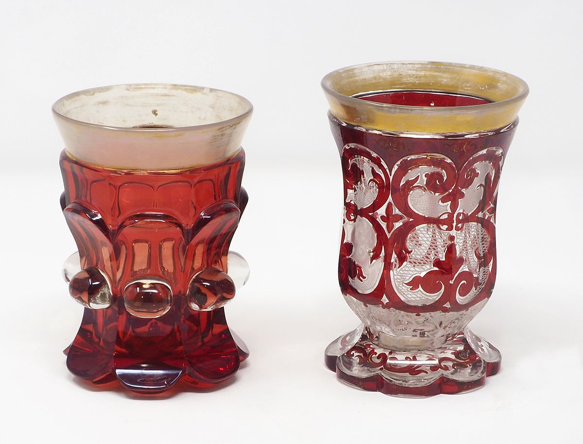 Lotto di 2 bicchieri in cristallo di Boemia nei toni del rosso. XIX secolo....