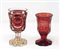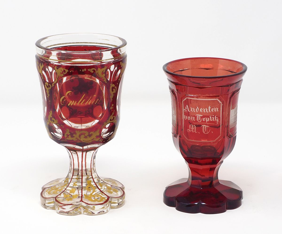 Lotto di 2 bicchieri in cristallo di Boemia decorati con vedute di paesaggi....