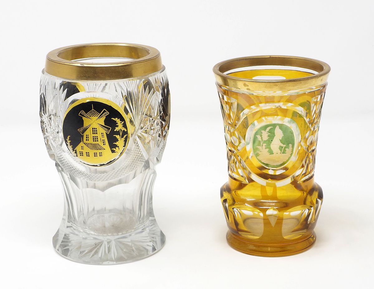 Lot 273 | Lotto di 2 bicchieri in cristallo di Boemia decorati a motivi floreali. XIX...