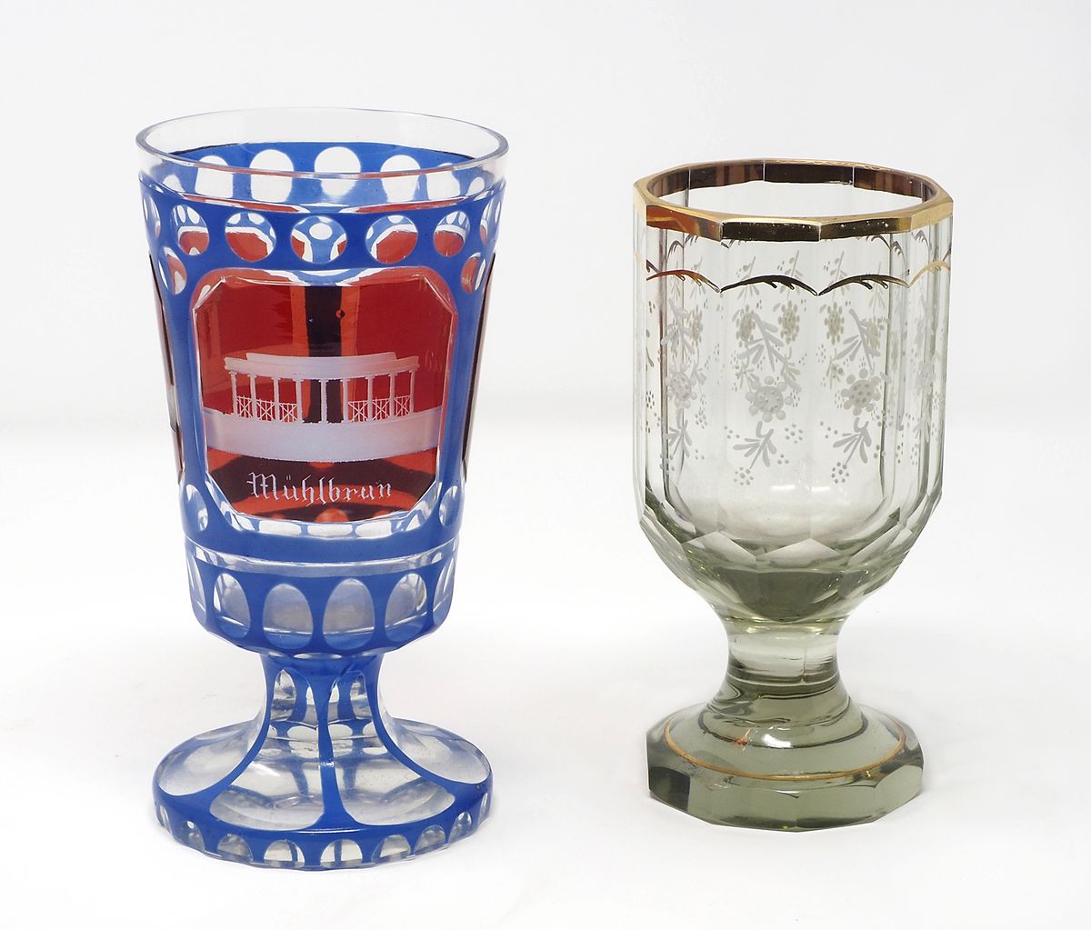 Lotto di 2 bicchieri in cristallo di Boemia decorati a motivi floreali. H....