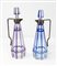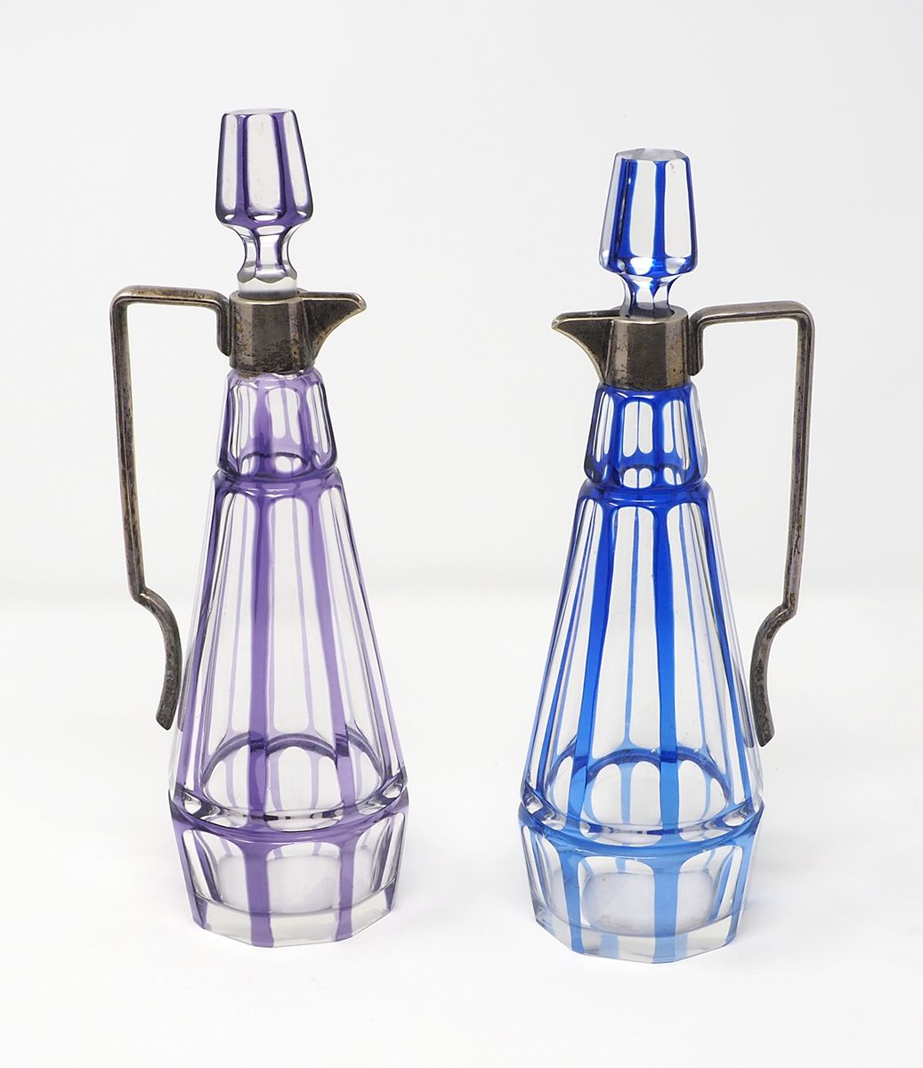 Coppia di bottiglie con tappi, collo e montatura in metallo. H. tot cm. 25.