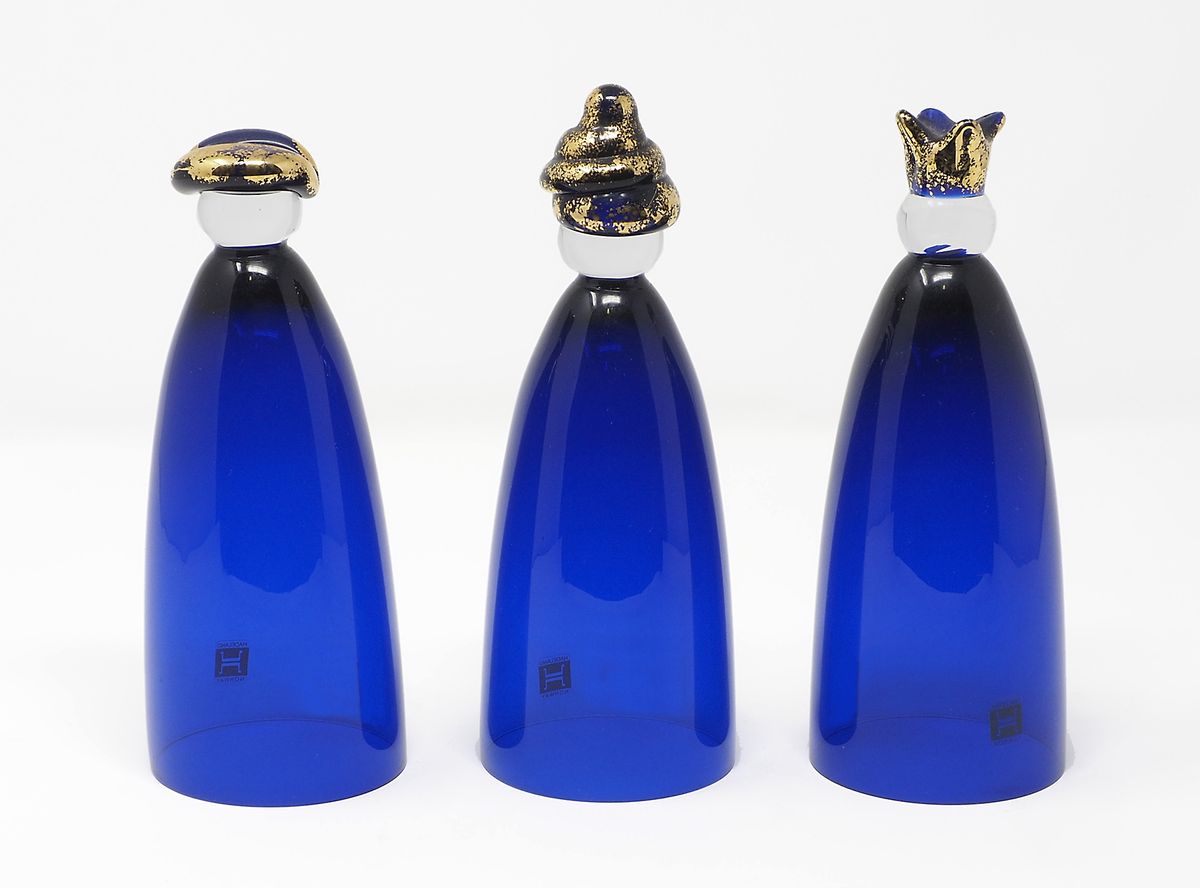 Lot 276 | Lotto di 3 calici rovesciati, in vetro blu. H. cm. 14.