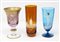 Lotto di 3 bocchieri in vetro decorati con figura e paesaggi. H. max cm. 17,5.