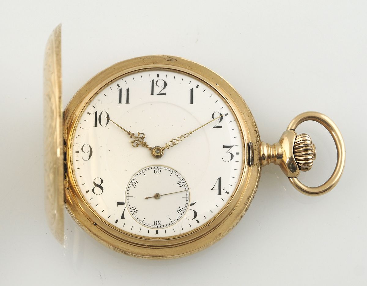 Zenith: orologio da tasca in oro giallo 14Kt con casse finemente incise,...