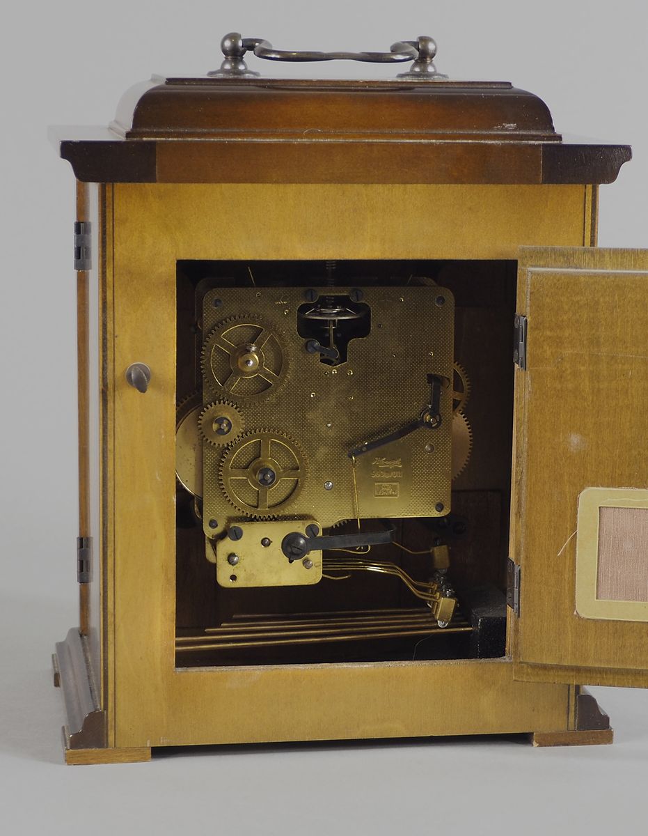 Kienzle: orologio da tavolo in legno con quadrante a numeri romani. H. cm. 27.