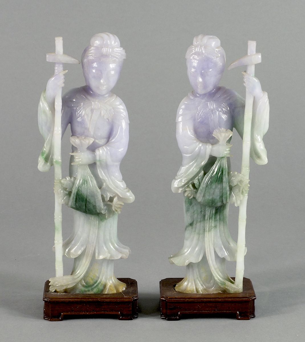 Lot 362 | Lotto di 2 contadine orientali in giada a 2 colori. H. cm. 20.