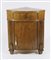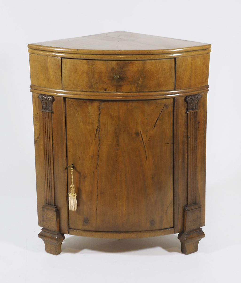 Angoliera in legno chiaro con anta, colonnette scolpite.
