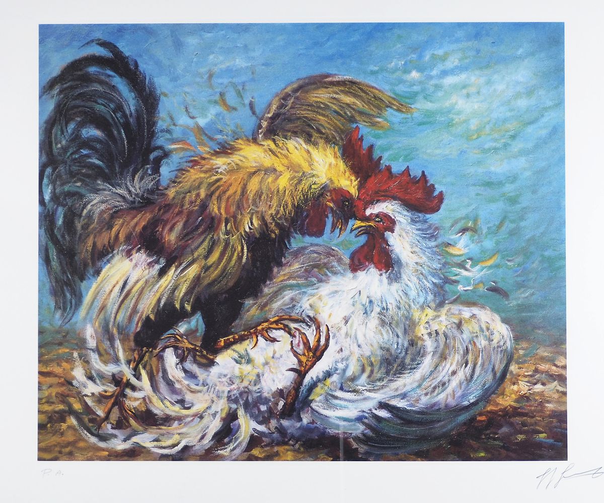 Giovanfrancesco Gonzaga Milano 1921-2007 "Lite fra galli" cm. 65x88 -...