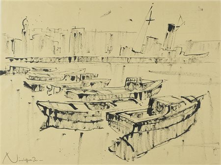 Nicola Sponza Corfù 1914-Trieste 1996 "Trieste, il porto" cm. 35x46 - china...