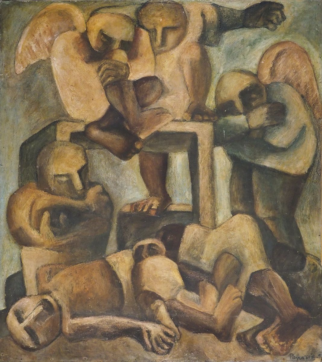 Paul Pennisi 1930-2018 "Gli angeli della misericordia" cm. 100x90 - olio su...