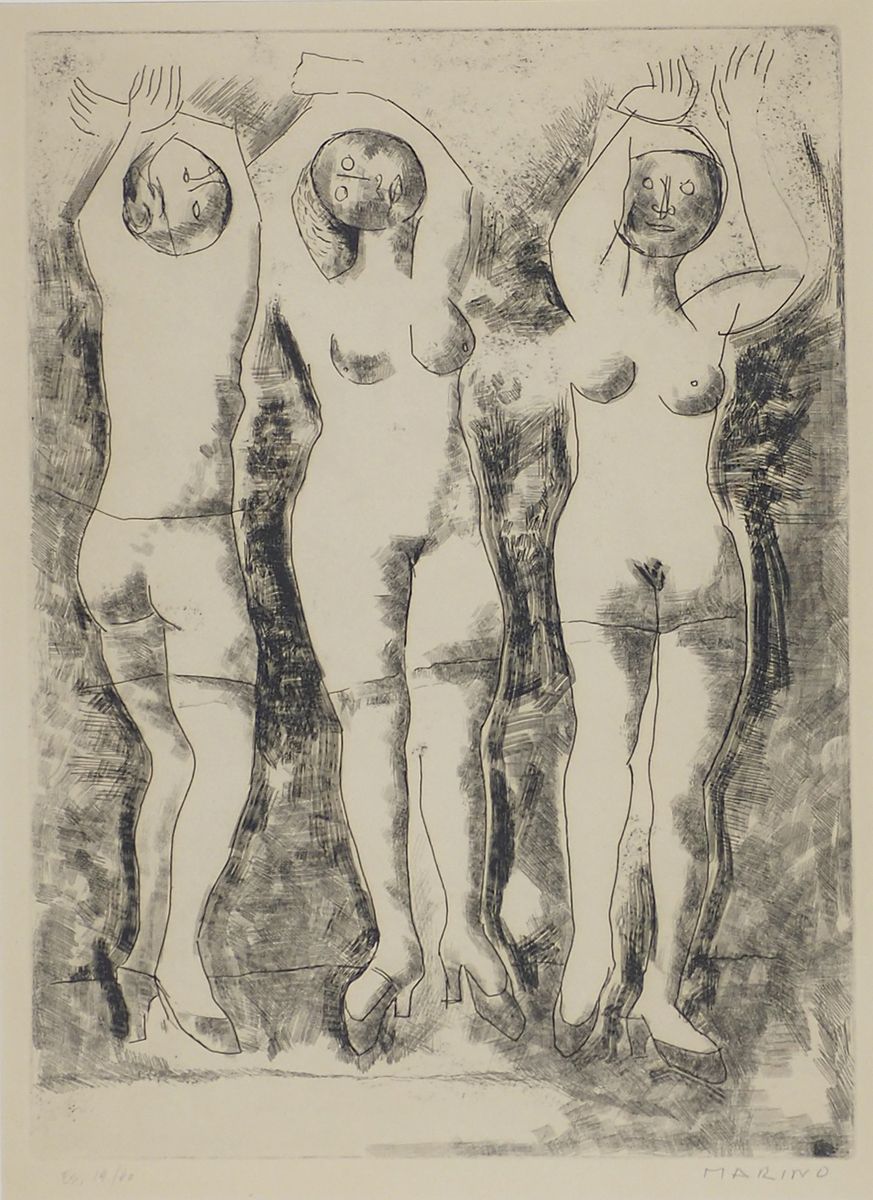 Marino Marini Pistoia 1911-1980 "Tre figure" cm. 55x40 - incisione Firmato b....