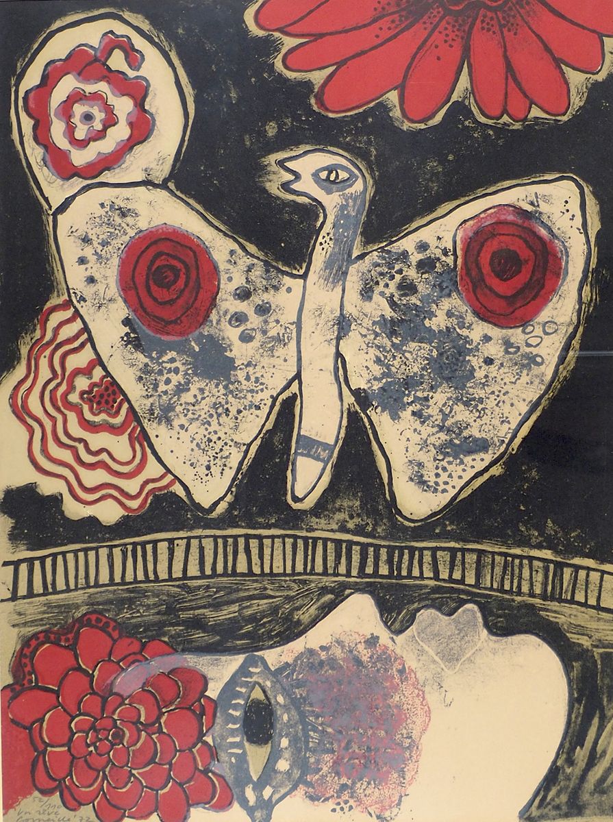 Guillaume Corneille 1922- "Oiseau" cm. 72x55 - litografia a colori Firmato b....