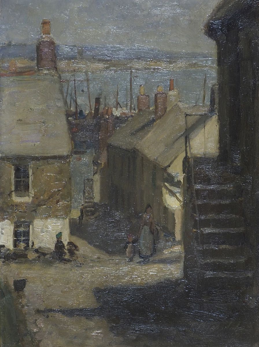 P.M. Teasdale 1870-1961 "Paesino di mare" cm. 37x26 - olio su tela Firmato b....