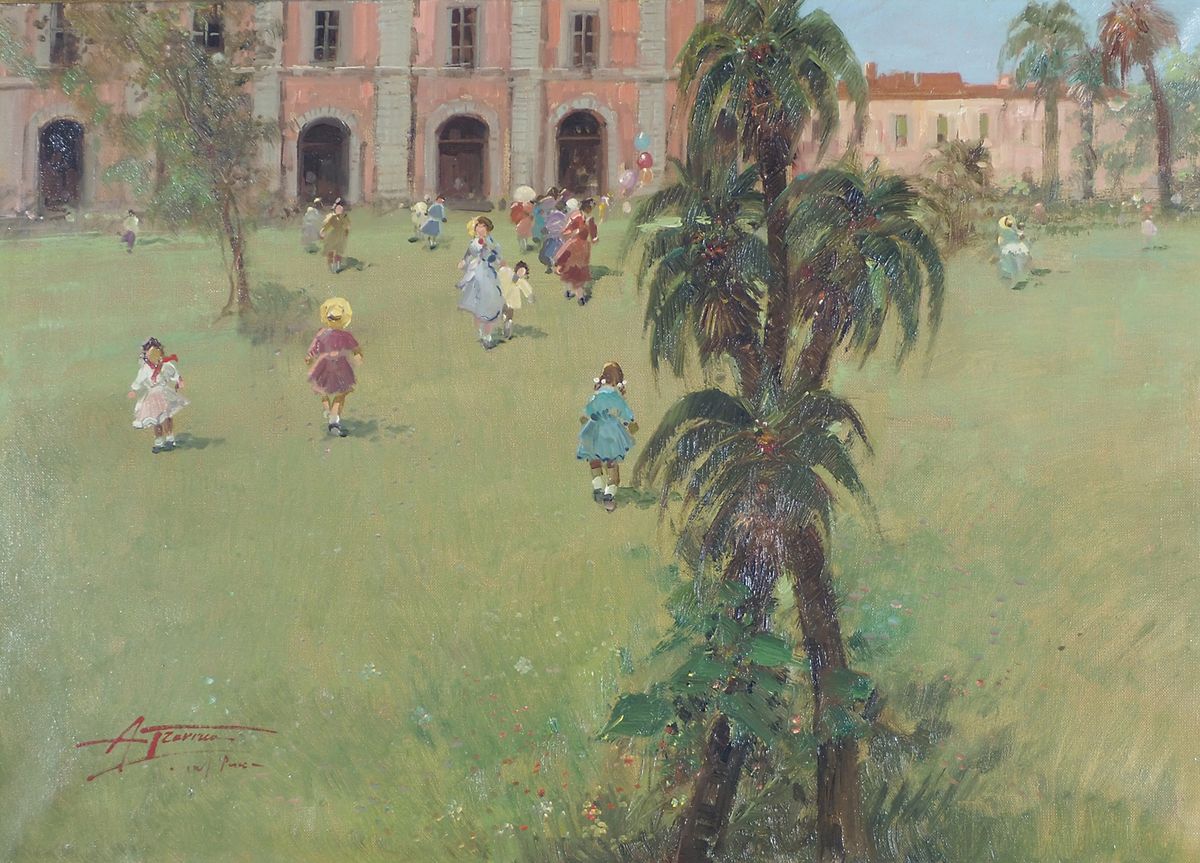 Antonio Gravina 1934-2011 "Ai Giardini" cm. 50x70 - olio su tela Firmato b. a...