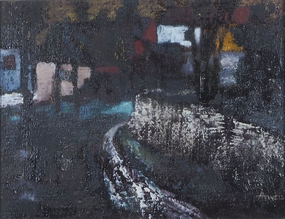 Anzil (Luigi Toffolo) Hausham 1911-2000 "Paesaggio notturno" cm. 17x24 - olio...