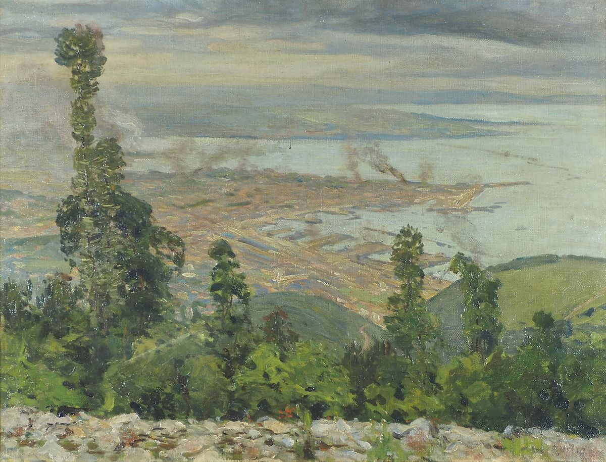 Ugo Flumiani Trieste 1876-1938 "Trieste da Poggioreale" cm. 51x68 - olio su...