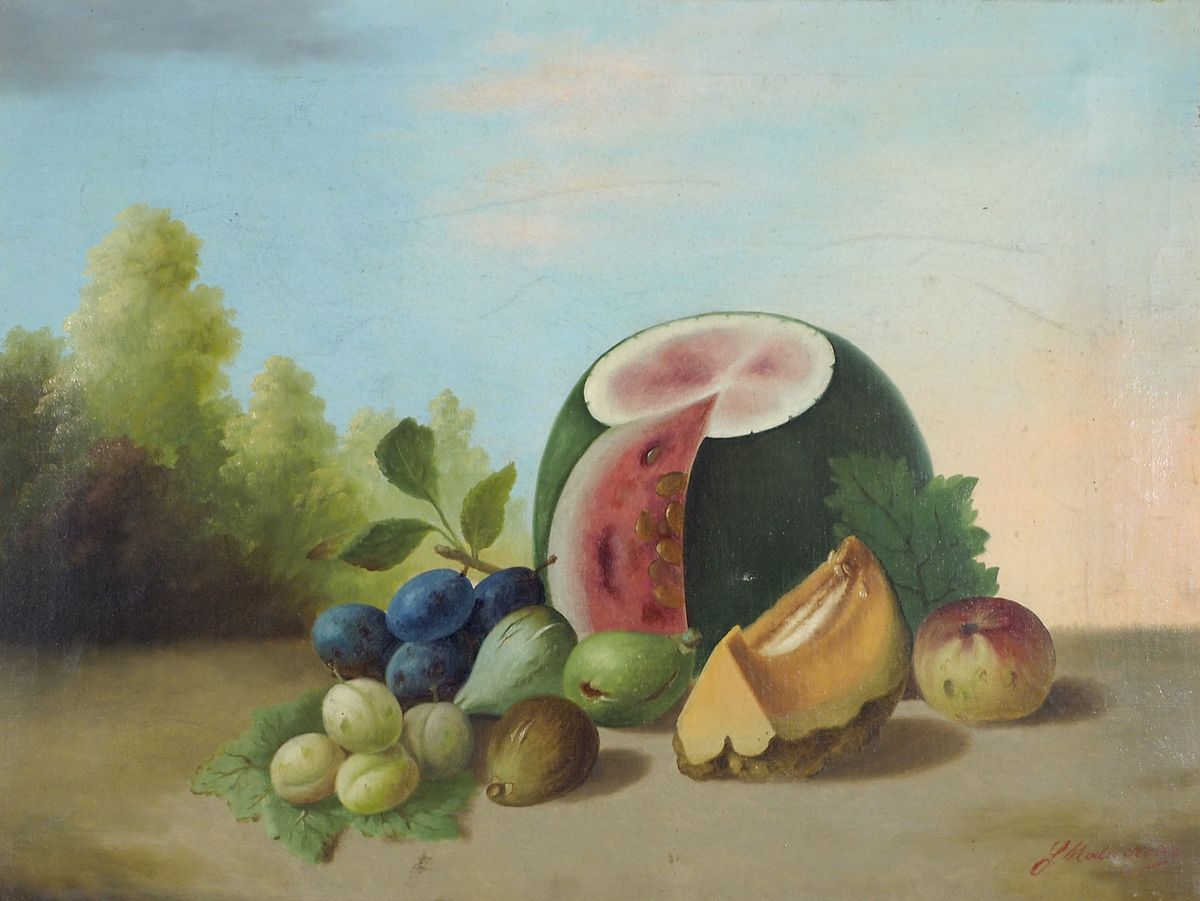 Francesco Malacrea Trieste 1813-1886 "Natura morta nel paesaggio" cm. 50x66 -...