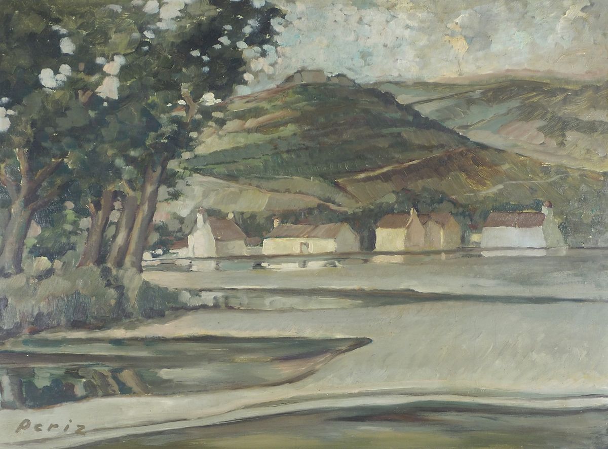 Tiziano Perizi Trieste 1895-1975 "Paesaggio con ase e alberi" cm. 60x80 -...