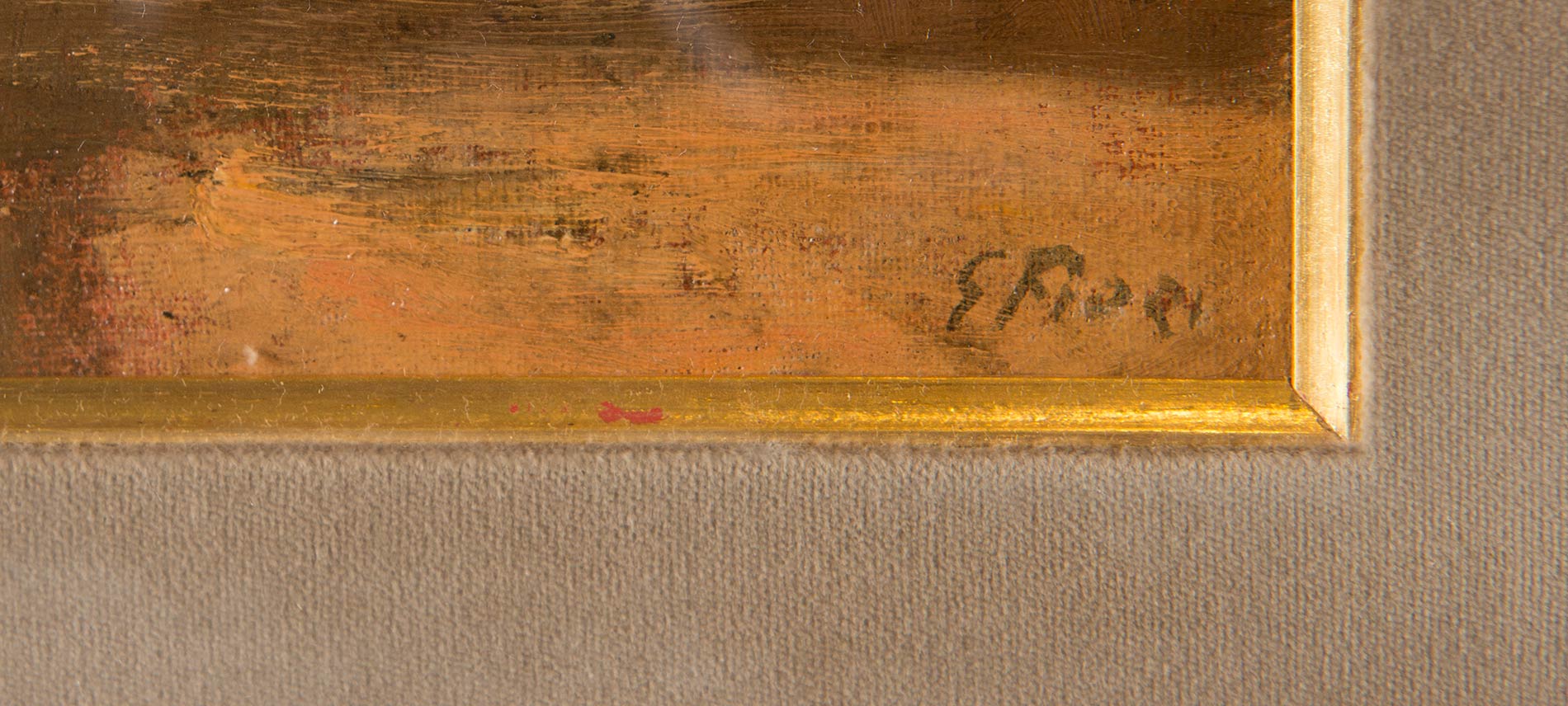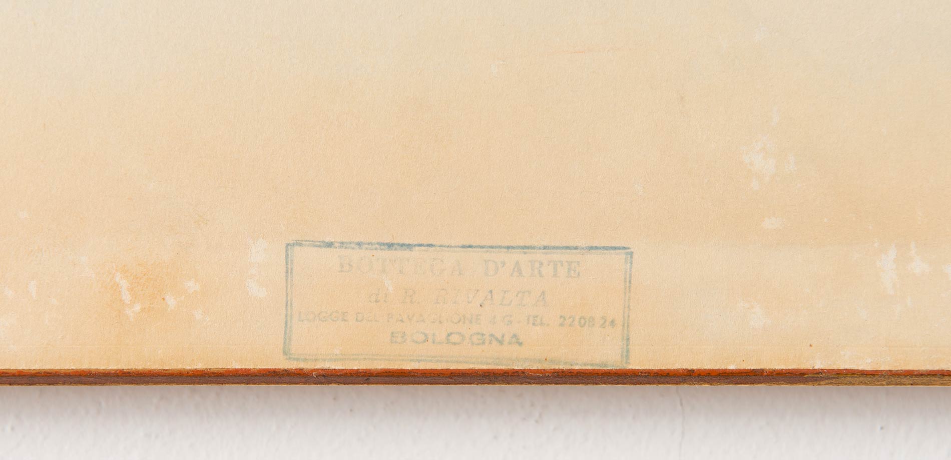 Olio su tavola, firmato in basso a destra G. Fiori, H cm 37.5x30 Al retro reca timbro Bottega d’Arte di R. Rivalta – Bologna.