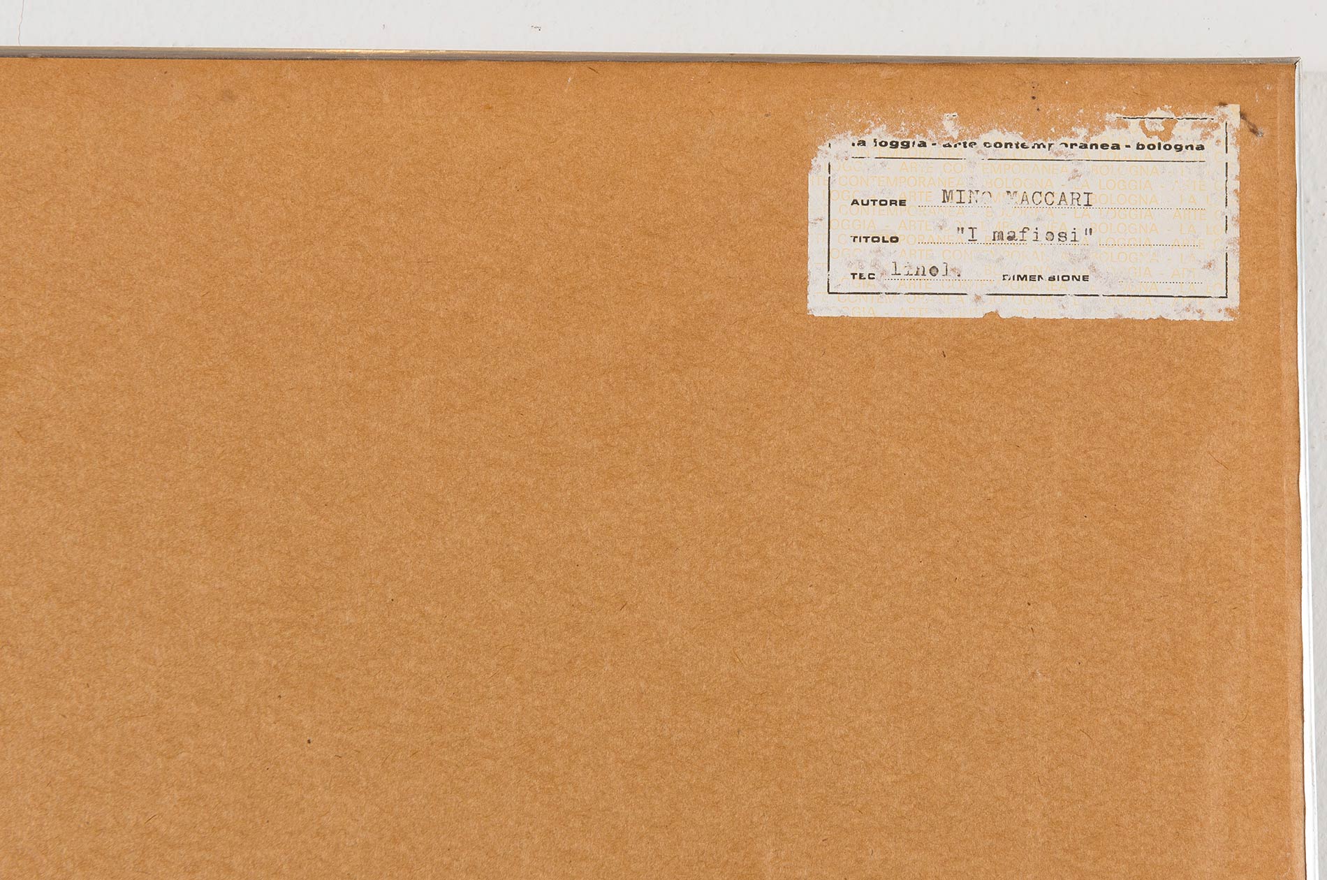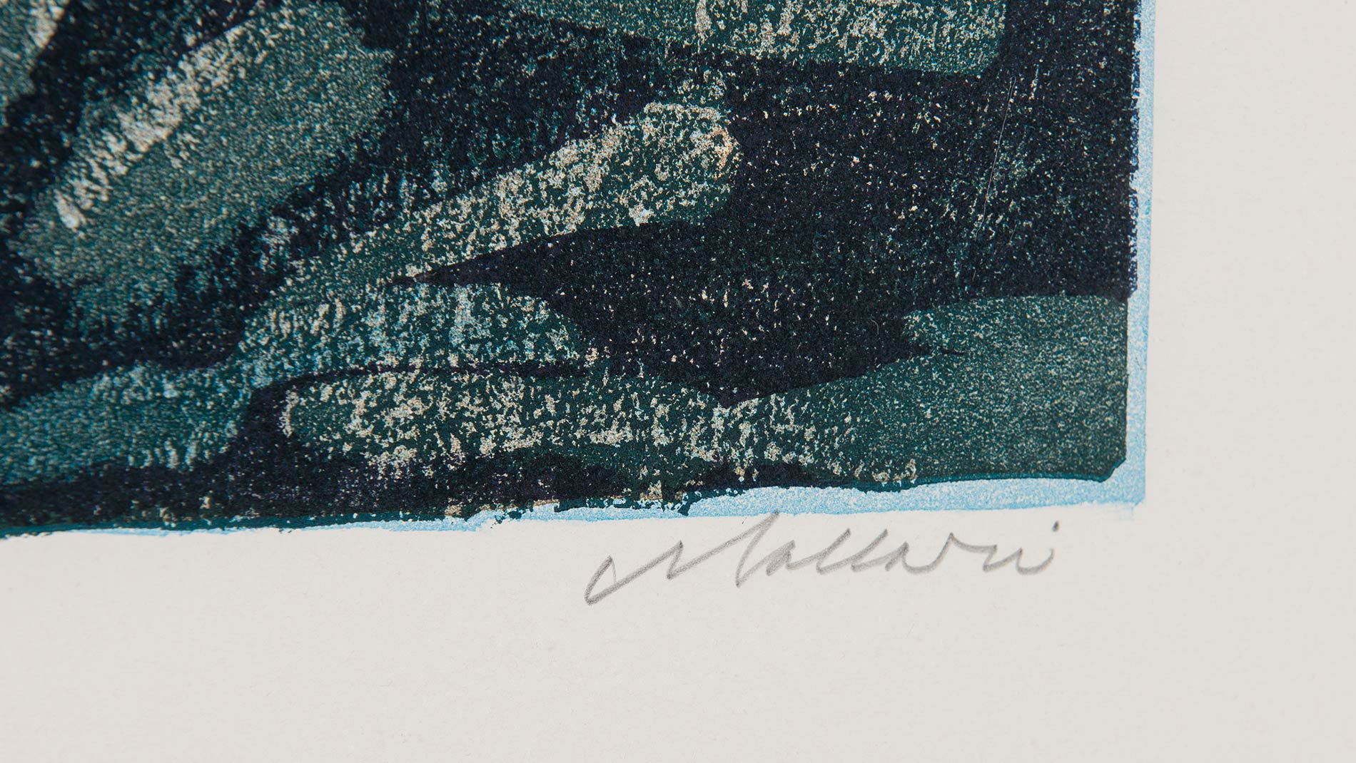 Litografia a colori, firmata in basso a destra Maccari, numero di tiratura in basso a sinistra 43/58, Lastra H cm 37x50 Al retro etichetta Galleria La Loggia – Arte Contemporanea – Bologna.