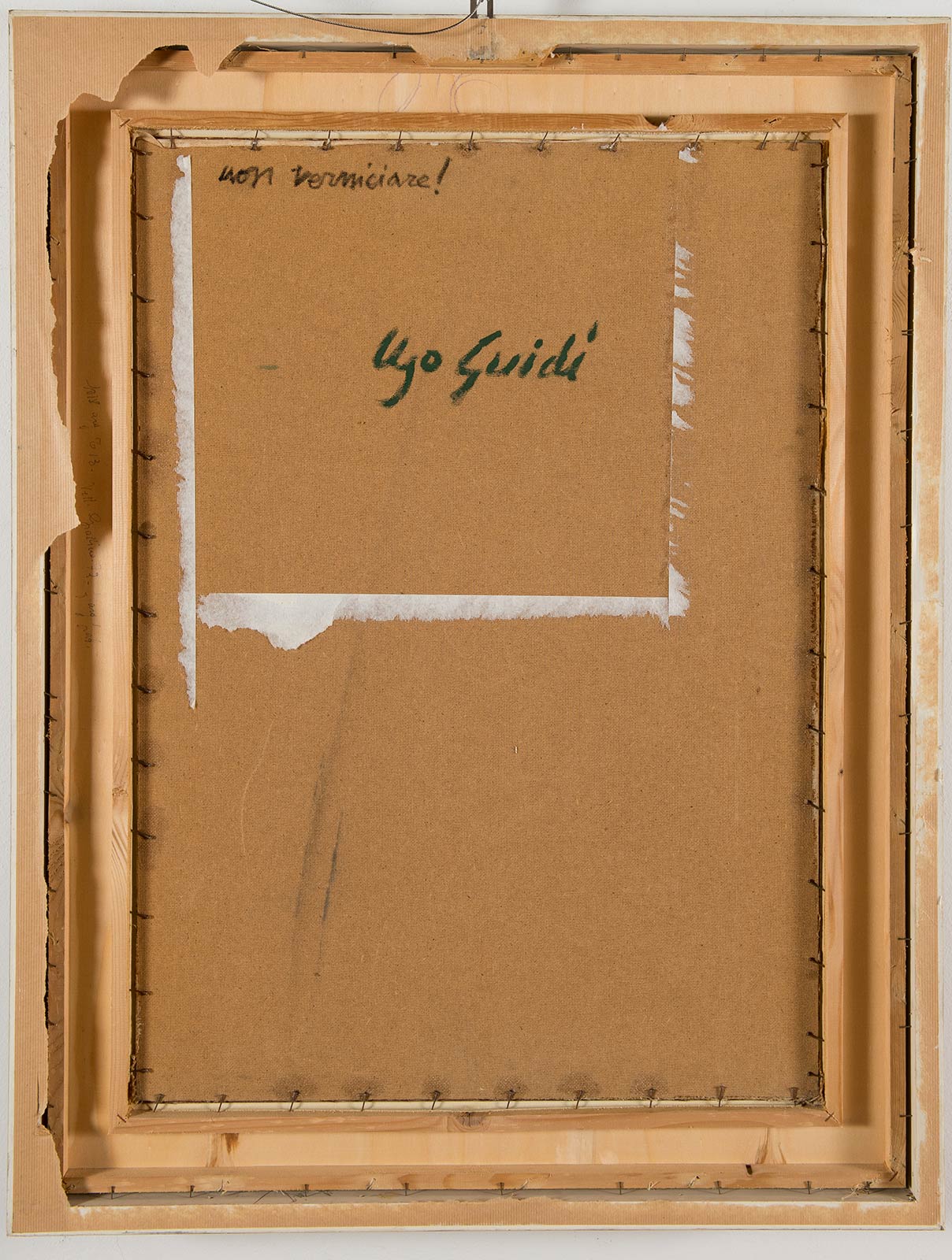 Olio e tecnica mista su tela applicata su masonite, firmato in basso a sinistra Ugo Guidi, al retro reca firma Ugo Guidi, H cm 85x60