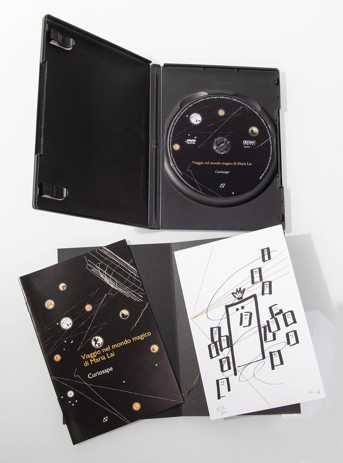 Maria Lai (Ulassai 1919 – Cardedu 2013), Lotto composto da dvd e serigrafia “Curiosape”, 2008.