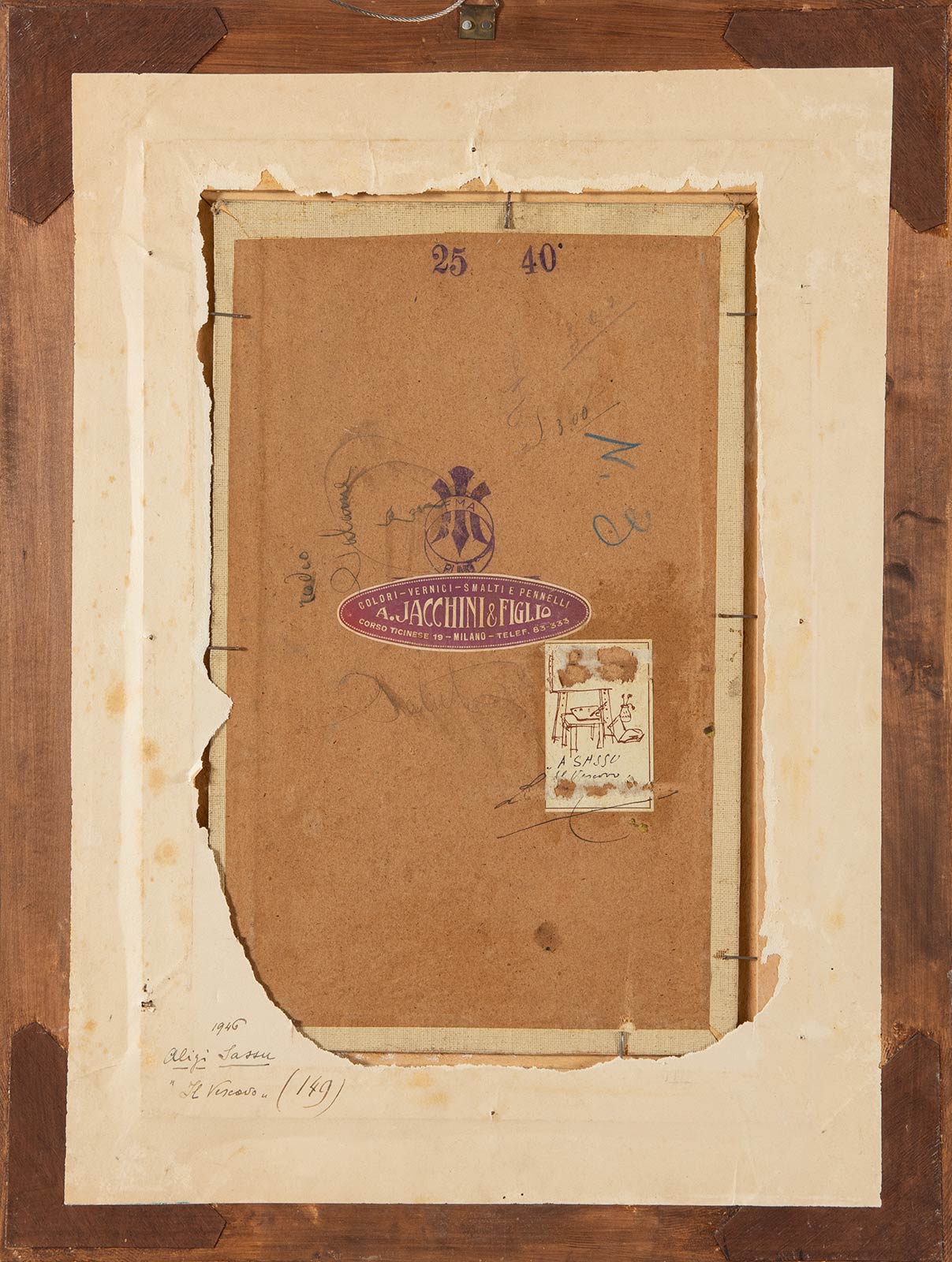 Olio su cartone telato, firmato in basso a destra Sassu, reca etichetta parzialmente leggibile al retro, H cm 38x24