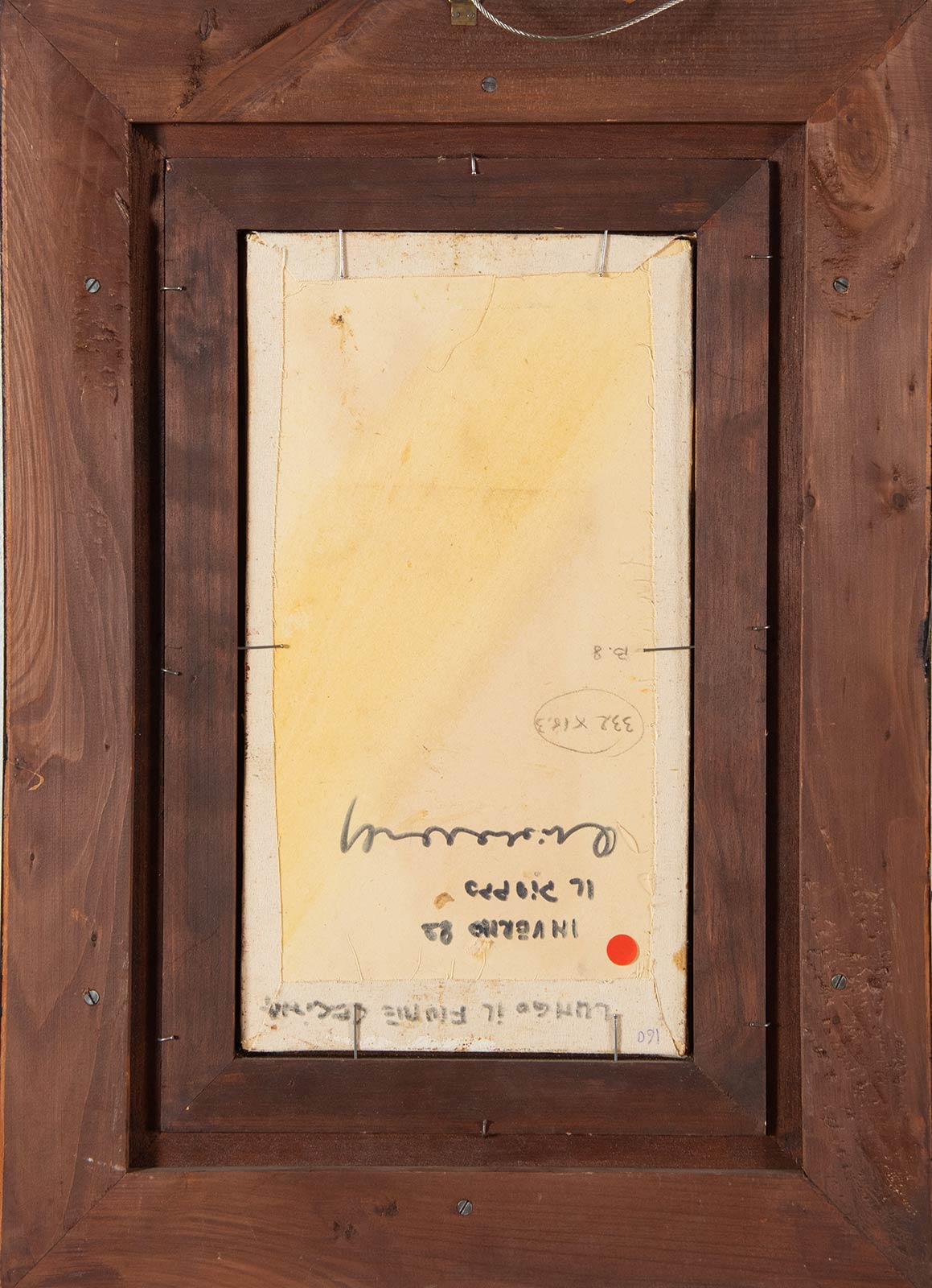 Olio su tela applicata su tavola, al retro iscrizione e firma non decifrata, H cm 33x18