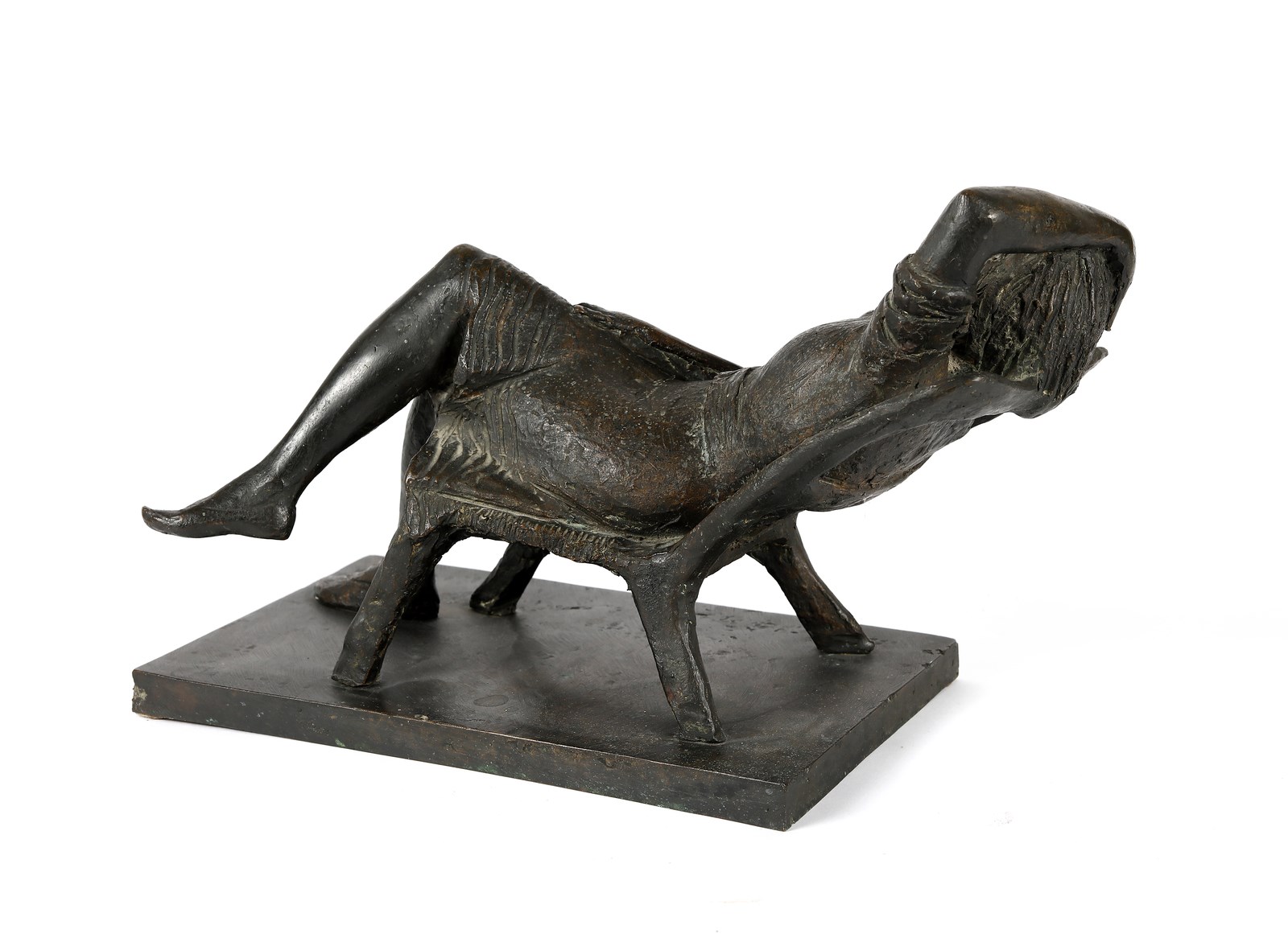 PELLINI EUGENIO (1864 - 1934) Donna sdraiata. . Scultura in bronzo. Cm 29,50 x 25,00 x 18,00. Firma alla base.