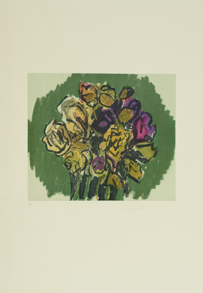 Ennio Morlotti Fiori Litografia su carta, cm. 70x50, es. P.A. Firmato in basso a destra.