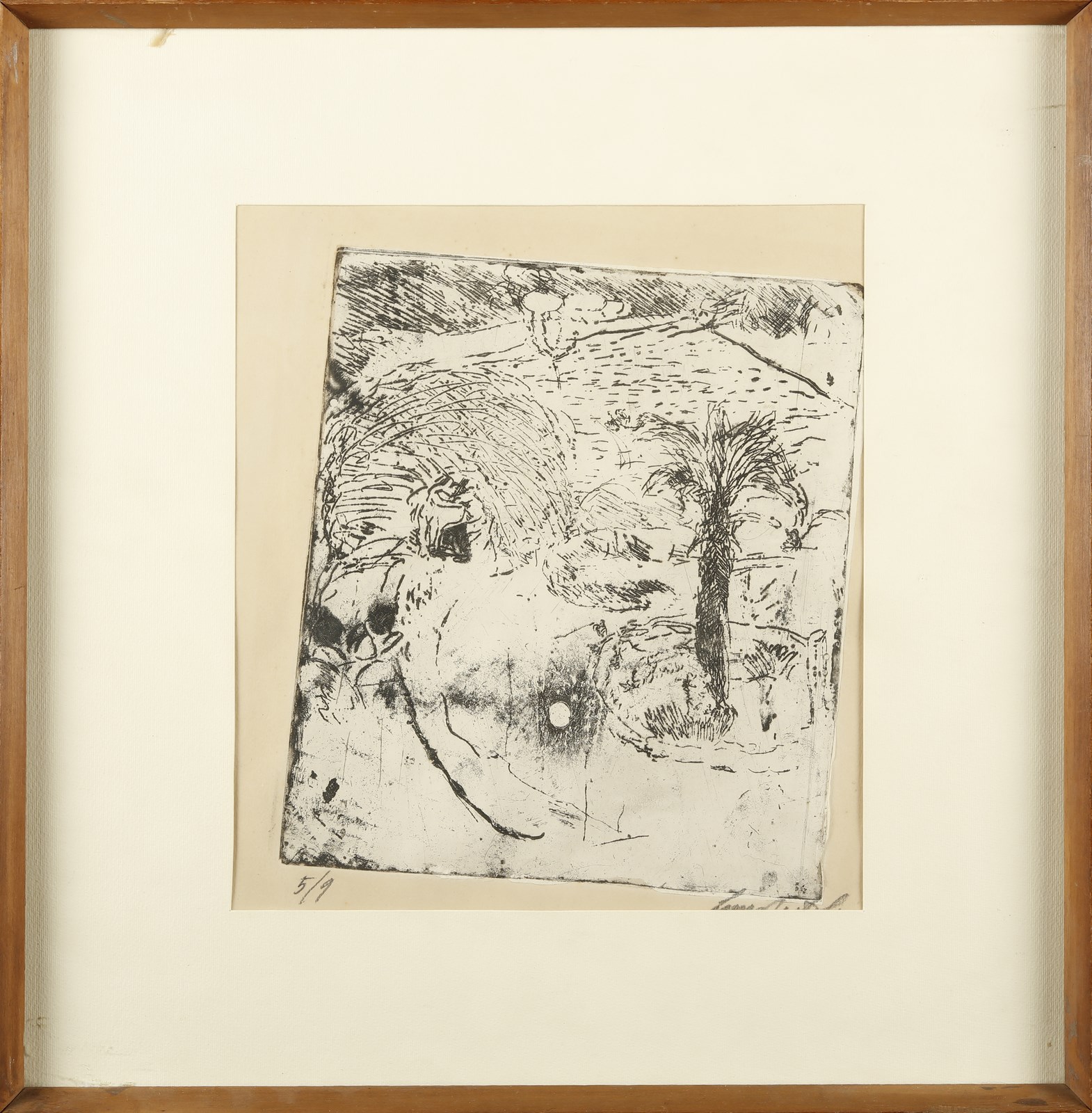 BARTOLINI LUIGI (1892 - 1963) La palma. 1930. Acquaforte. Cm 25,00 x 30,00. 5/9. Tiratura e firma a matita in basso. Dimensione lastra: 25x21 cm. Pubblicazione: Catalogo della mostra Acquaforti di Luigi Bartolini, Studio d'arte Grafica, Bologna, 1969. . Cornice presente
