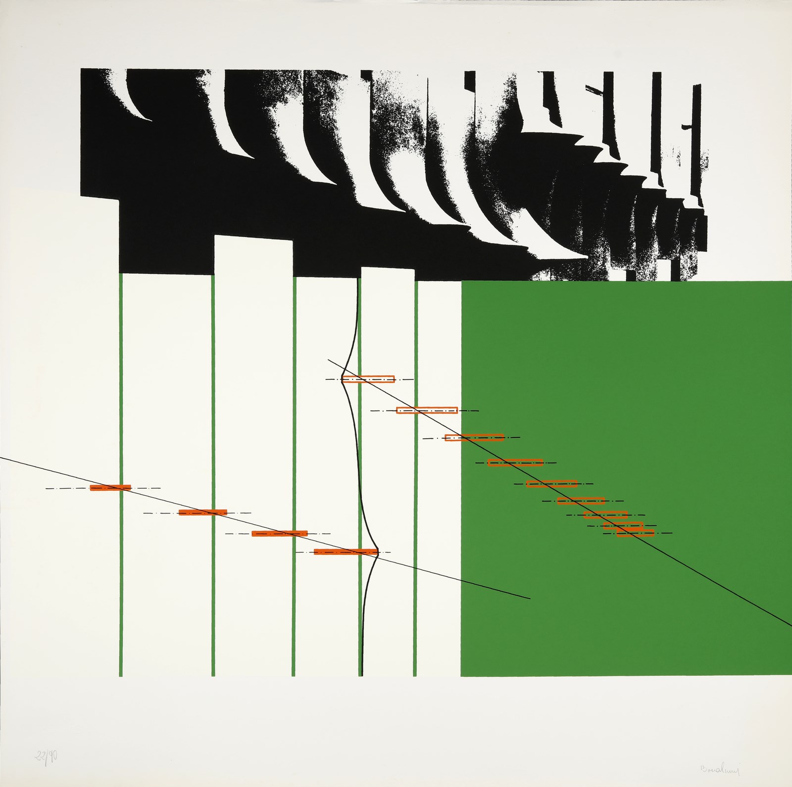 BONALUMI AGOSTINO (1935 - 2013) Senza titolo. Litografia. Cm 70,00 x 70,00. 22/90. Tiratura e firma a matita in basso. Timbro a secco Circolo Culturale Rs in basso a sinistra.