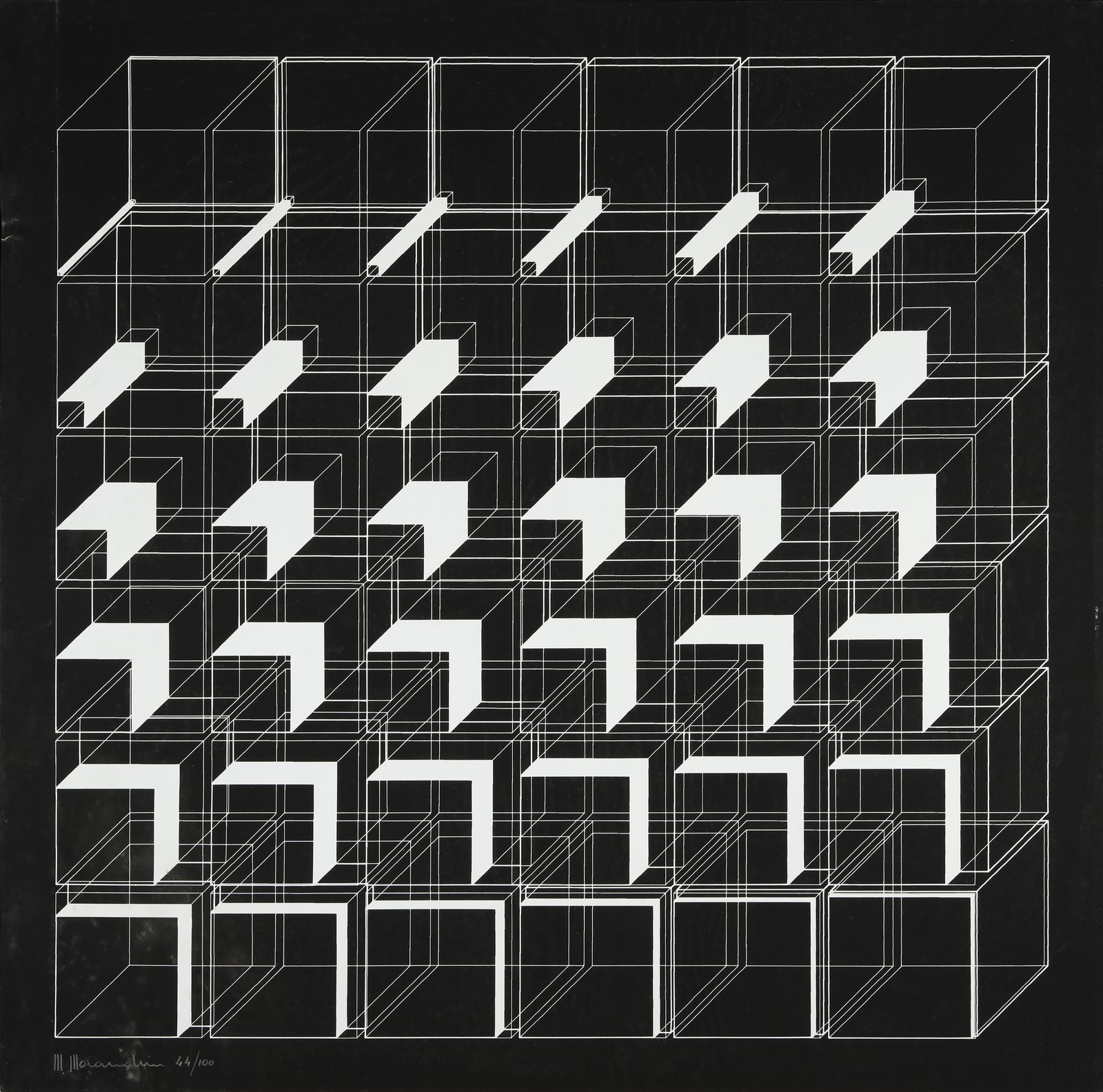 MORANDINI MARCELLO (n. 1940) 109. 1971. Litografia. Cm 68,00 x 68,00. 44/100. Tiratura e firma a matita in basso a sinistra. Edizioni Circolo Culturale Rs. Confezione originale. Difetti.