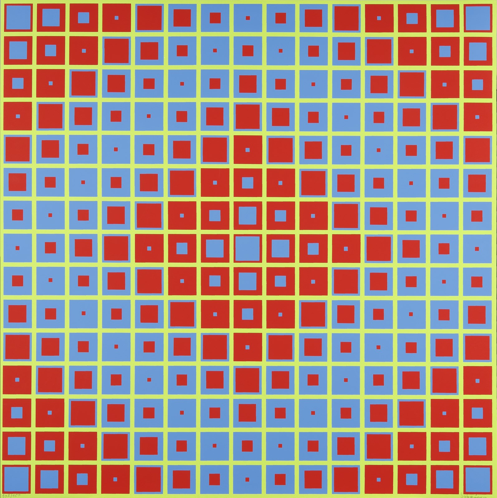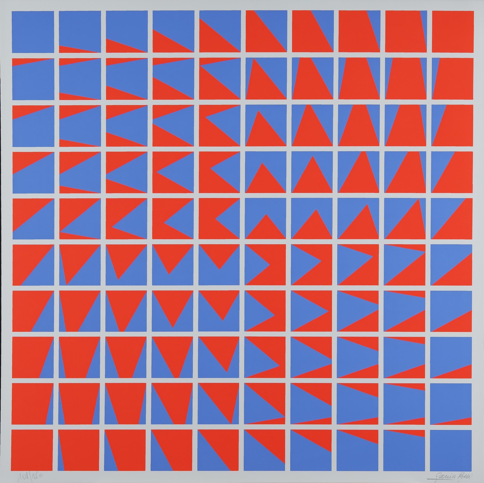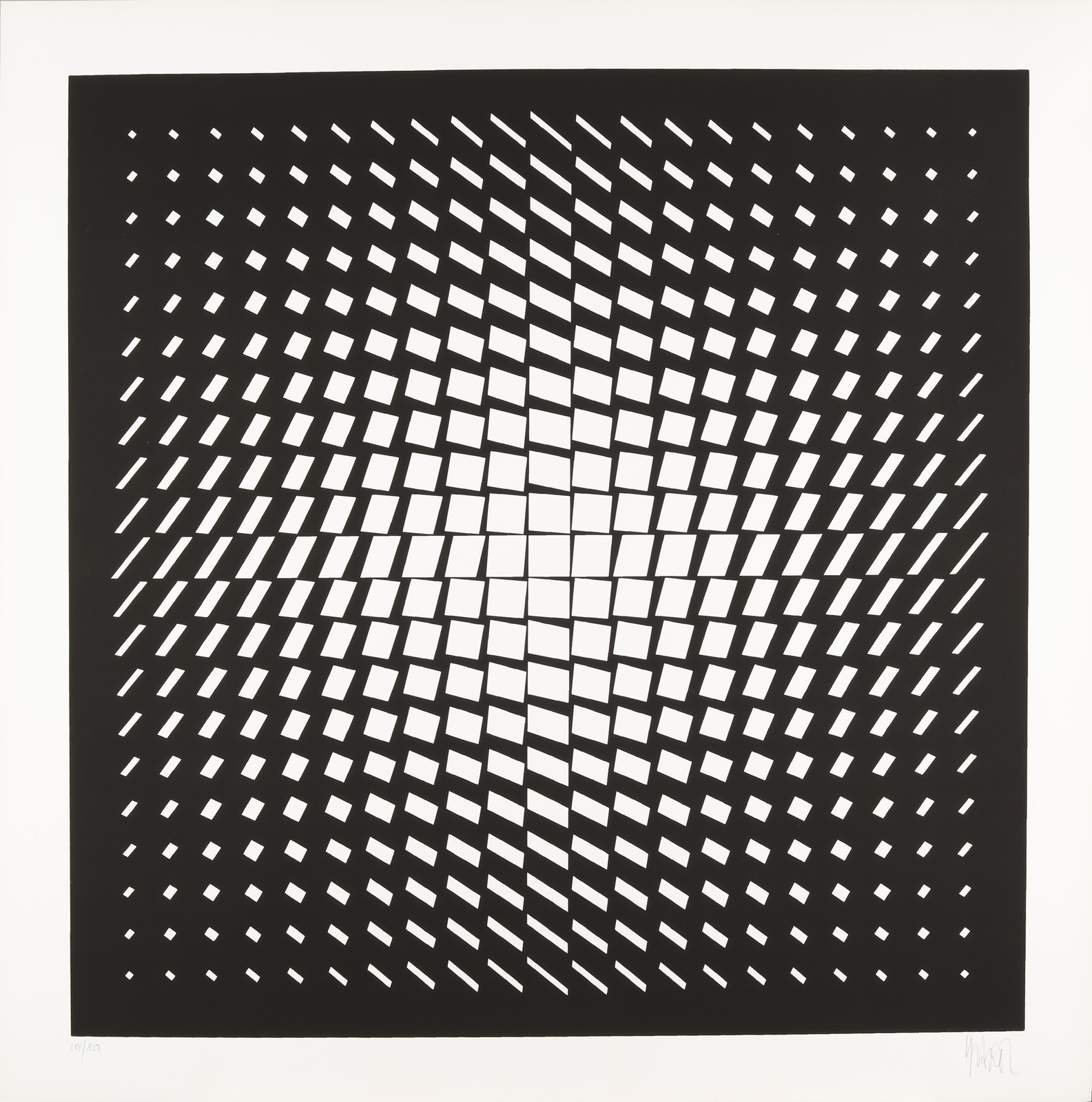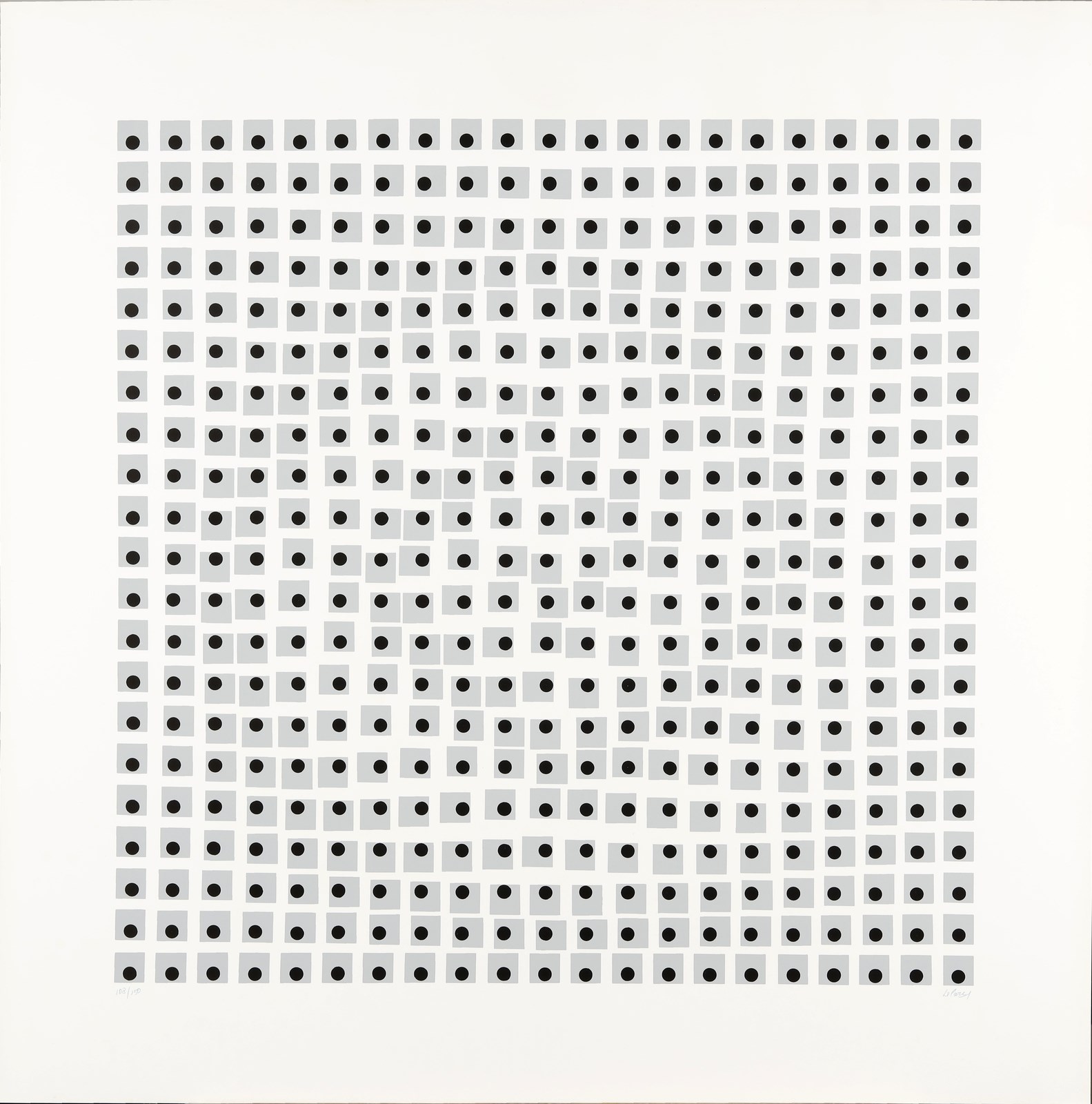 GRAV (Groupe de Recherche d'Art Visuel) Grav, Groupe de recherche d'art visuel 1960-1968. (6 fogli). Litografia (cartella completa). Cm 70,00 x 70,00. 108/150. Cartella realizzata in occasione della mostra retrospettiva, Lago di Como, 20/30 settembre 1975 a cura di Luciano Caramel del Groupe de Recherche d'Art Visuel ( Garcia Rossi, Le Parc, Morellet, Sobrino, Stein, Yvaral). Tutte le opere presentano firma e tiratura in basso a matita. Editore: Galleria Team Colore, Milano. Stampatore: Sam Villa, Milano. Presenti difetti.